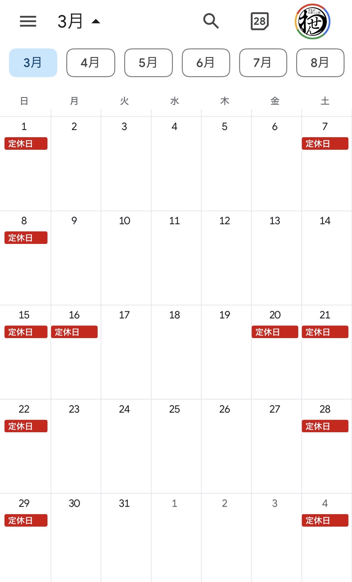 📅 3月の定休日